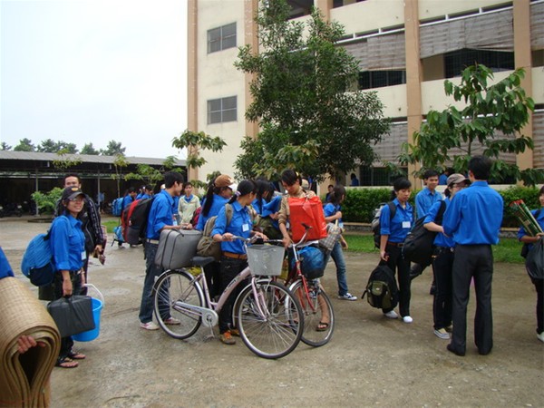 Hình 10: Đồ dùng của các bạn đang được đưa lên xe