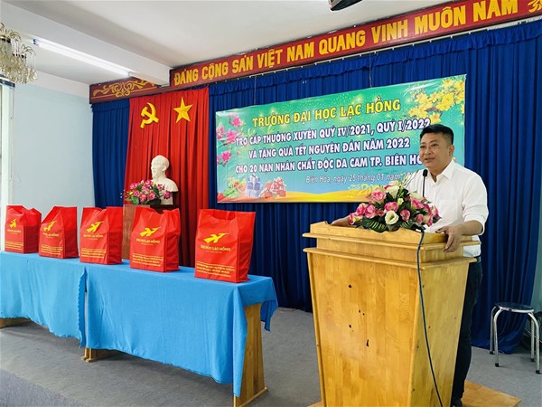 Tổng kinh phí dịp này trao cho 90 nạn nhân gồm quà Tết, trợ cấp quý IV/ 2021, quý I/2022 là: 268 triệu đồng; đây là kinh phí từ Trường Đại học Lạc Hồng và gia đình Cô Đỗ Thị Lan Đài (Chủ tịch Hội đồng trường), Thầy Đỗ Khôi Nguyên (Phó Hiệu trưởng nhà trường) hỗ trợ, trợ cấp thường xuyên cho 90 nạn nhân chất độc da cam trên địa bàn tỉnh Đồng Nai