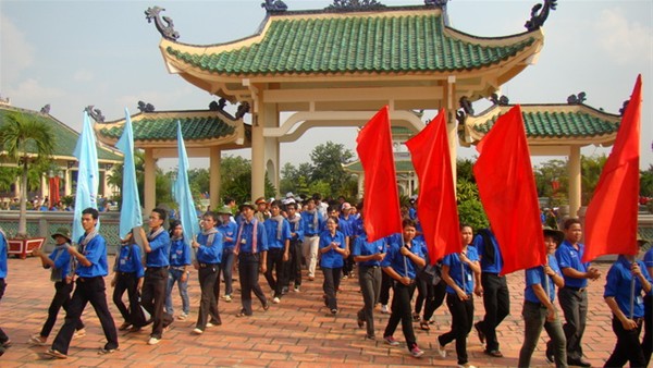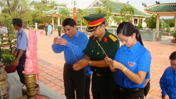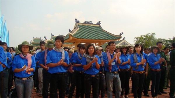 Hình 10: Đ/c Nguyễn Hồ Xuân Hương - Bí thư Đoàn trường cùng các đoàn bạn thắp nhang tại lễ báo công.