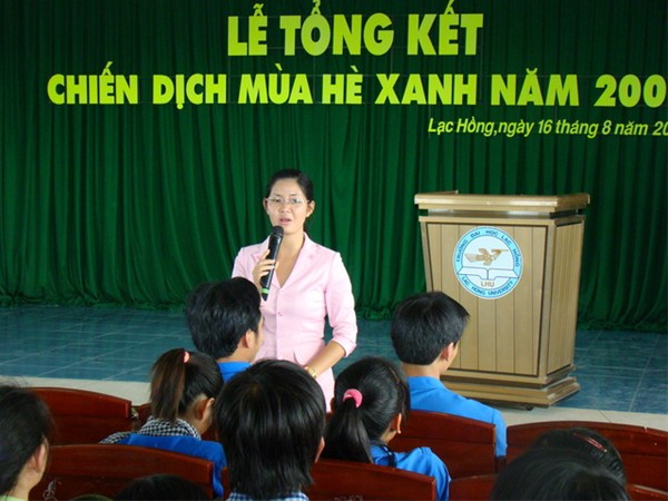 Tham gia buổi tổng kết có Th.S Nguyễn Hồ Xuân Hương – TVĐU, Bí thư Đoàn trường, Đ/c Lê Sơn Quang – Chủ tịch Hội sinh viên trường, Đ/c Trần Tiến – P. Bí thư Đoàn trường. Năm nay đội sinh viên tình nguyện hè 2009 trường ĐH Lạc Hồng tham gia chiến dịch với lực lượng 100 sinh viên tình nguyện (SVTN) tại các địa phương xã Phú Lý – huyện Vĩnh Cửu (50 SVTN), tỉnh Quảng Trị (20 SVTN), thành phố Biên Hòa (30 SVTN), tất cả các bạn đều tham gia chiến dịch kể từ ngày 15/7/2009 và kết thúc chiến dịch vào ngày 15/8/2009. Kết thúc chiến dịch và tại buổi lễ tổng kết cũng là dịp để các bạn ôn lại những gì đã làm được, những kỷ niệm khó quên trong chuyến đi đầy ấp những niềm vui, nỗi buồn cũng như sự khó khăn về một chiến dịch tình nguyện ý nghĩa trong đời sinh viên của mình. Đó cũng là lý do mà tại buổi lễ tổng kết nhiều câu chuyện thật sự cảm động, vui buồn lẫn lộn đã được các bạn đội viên kể lại tại buổi tổng kết. Trước đó 1 ngày các bạn cũng đã tham gia lễ báo công do Tỉnh đoàn Đồng Nai tổ chức tại văn miếu Trấn Biên.