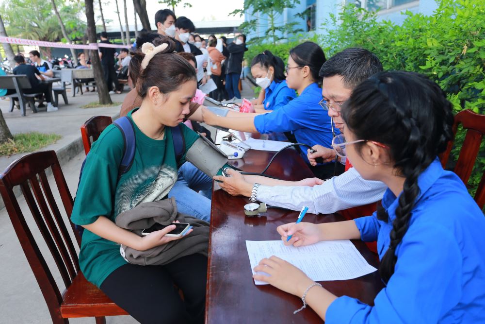 Trong buổi sáng ngày hội diễn ra, những người tham gia hiến máu đã đăng ký hiến máu và được các bác sĩ của bệnh viện Chợ Rẫy đo huyết áp, lấy mẫu máu, kiểm tra và tư vấn sức khỏe trước khi được hiến máu.