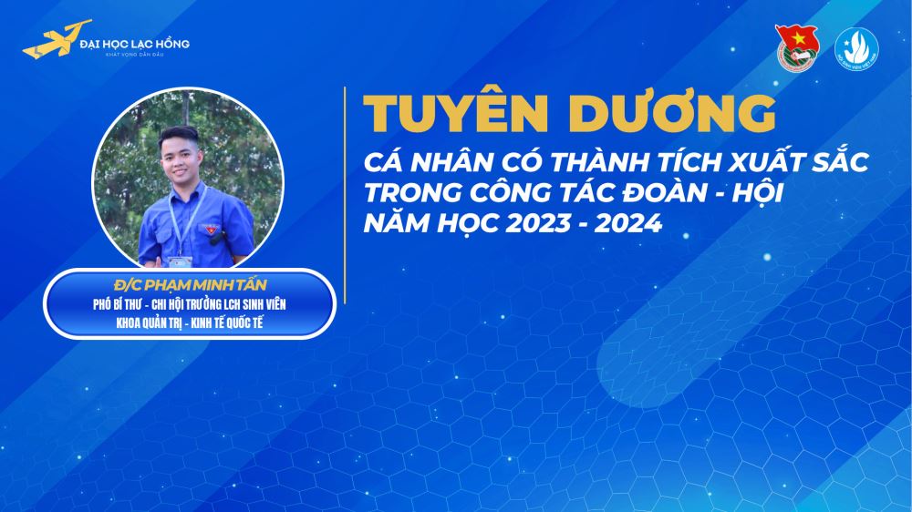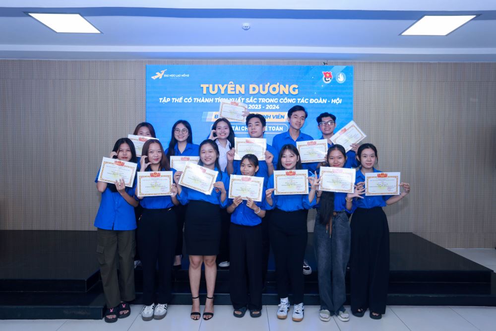 Trong năm học 2023 - 2024, để tuyên dương những đóng góp và phấn đấu của các tập thể và các nhân trong phát triển công tác Đoàn Thanh niên - Hội Sinh viên trường. Ngày 29/6/2024 tại Phòng B203, trường Đại học Lạc Hồng, BTV Đoàn trường đã tổ chức Buổi lễ Tuyên dương, Khen thưởng cho 13 tập thể và 17 cá nhân xuất sắc trong công tác Đoàn - Hội. Cụ thể như sau: