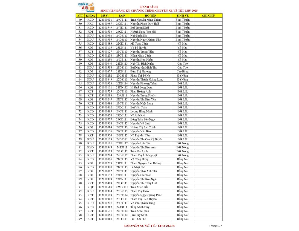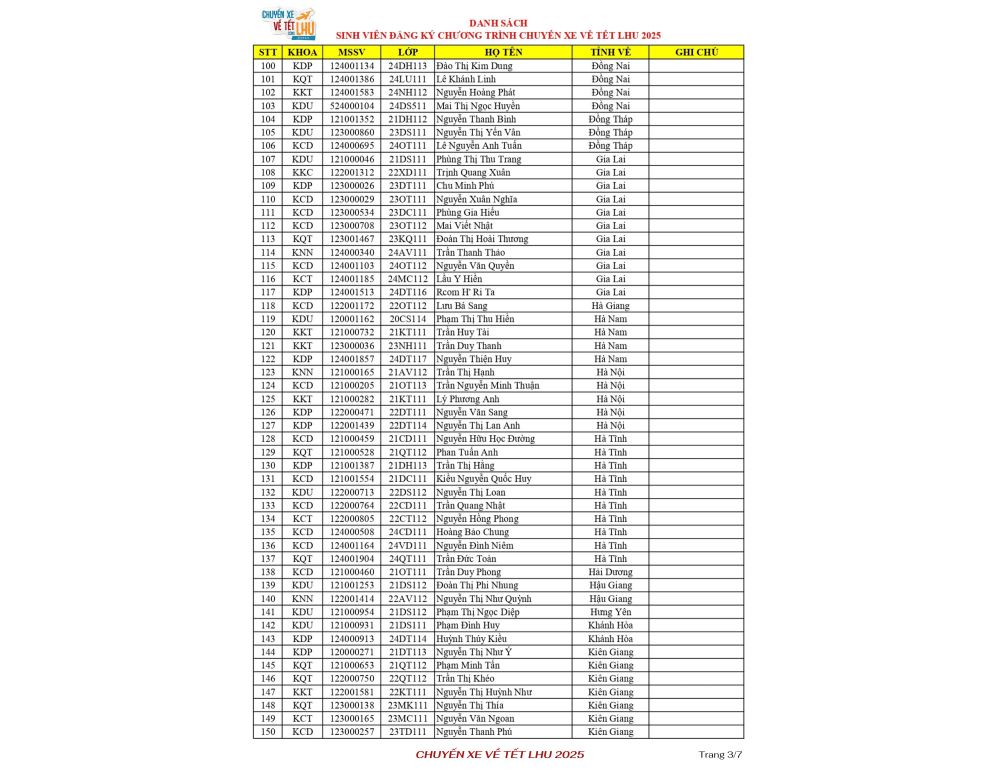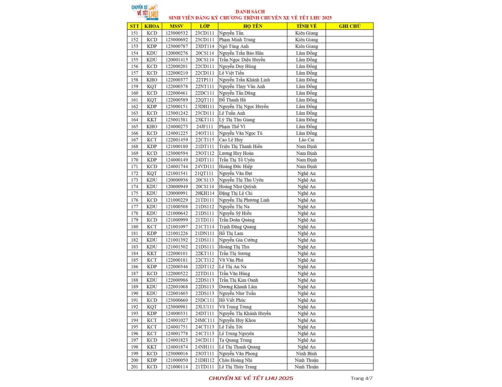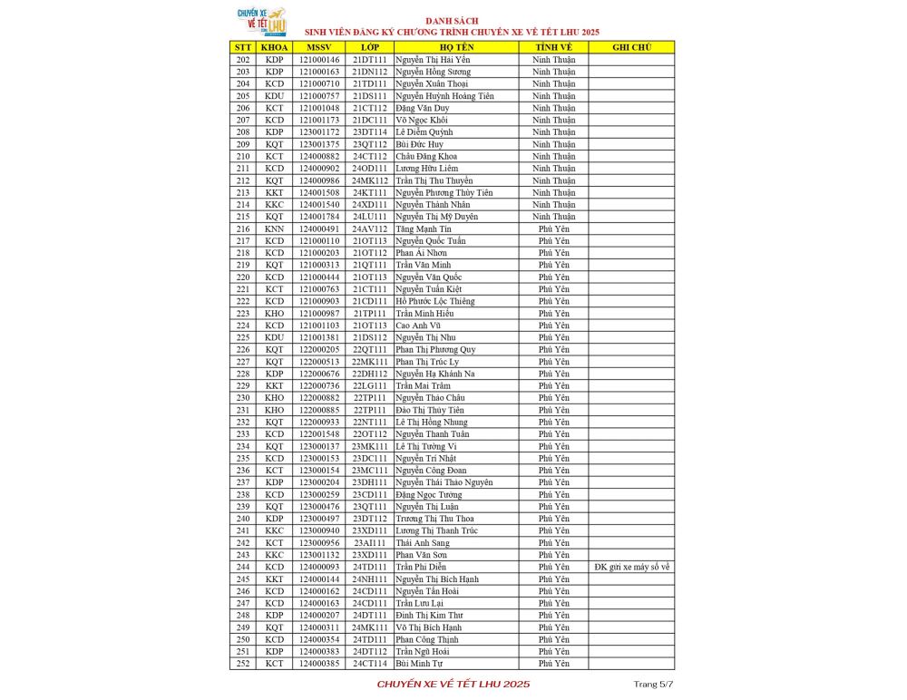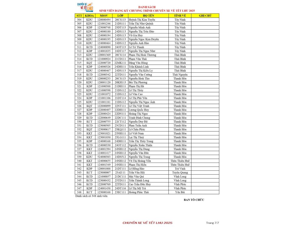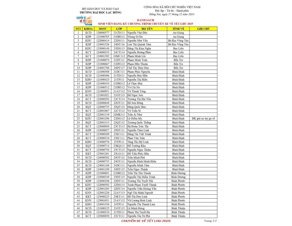 Danh sách sinh viên tham gia Chuyến xe về Tết LHU 2025: 👉XEM TẠI ĐÂY