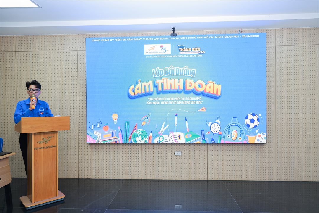 Chiều ngày 12/3/2026, tại phòng B203, cơ sở 1, Ban Thường vụ Đoàn trường tổ chức lớp Đoàn viên mới năm 2026 nhằm đẩy mạnh công tác giáo dục truyền thống, lý tưởng cách mạng, tinh thần yêu nước và đạo đức, lối sống cho thanh niên, học sinh ưu tú, có lý tưởng và nguyện vọng đứng vào hàng ngũ của tổ chức Đoàn TNCS Hồ Chí Minh.