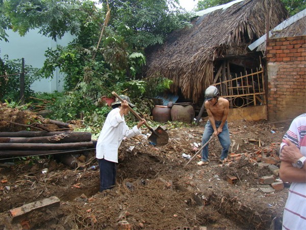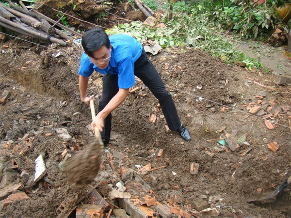 Hình ảnh đoàn viên cùng nhân công đào móng
