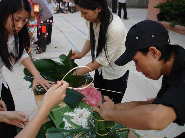 Thi trang trí mai đào và làm bánh chưng, bánh tét