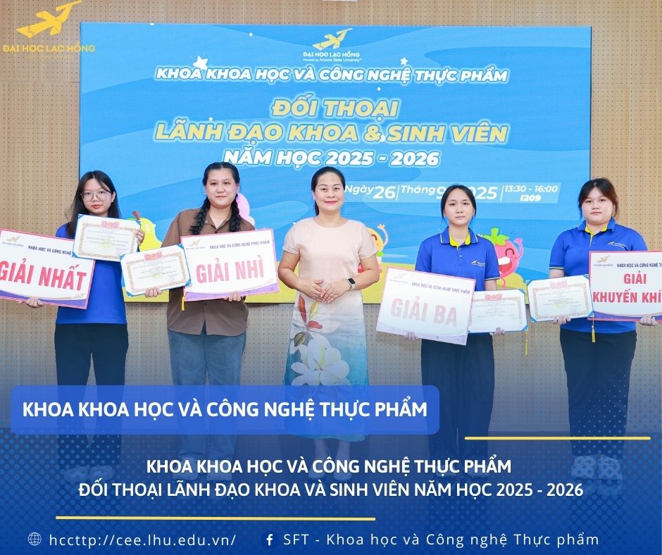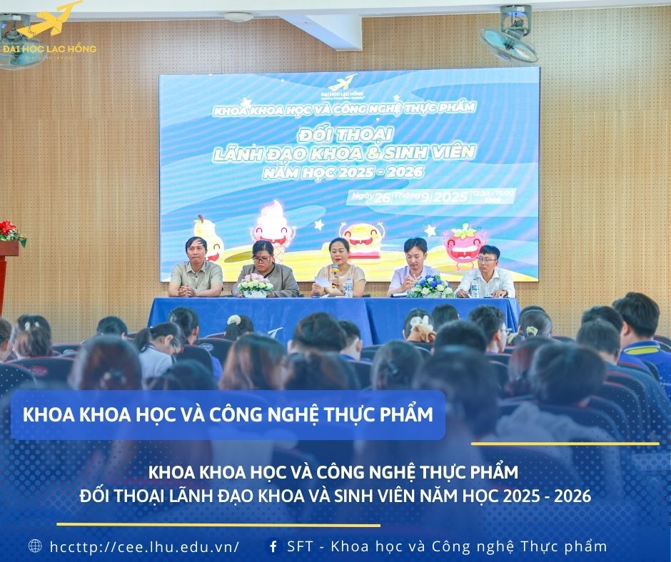 Ngày 26/9/2025 tại phòng I 209, nhằm lắng nghe và đồng hành cùng sinh viên trong quá trình học tập, rèn luyện và sinh hoạt, Khoa Khoa học và Công nghệ Thực phẩm, Trường Đại học Lạc Hồng đã tổ chức buổi đối thoại giữa Ban lãnh đạo Khoa và Sinh viên năm học 2025 - 2026. Đây cũng chính là dịp để thầy và trò cùng chia sẻ, thấu hiểu và xây dựng một môi trường học tập ngày càng chất lượng, thân thiện và sáng tạo.
