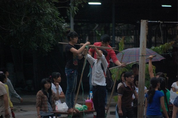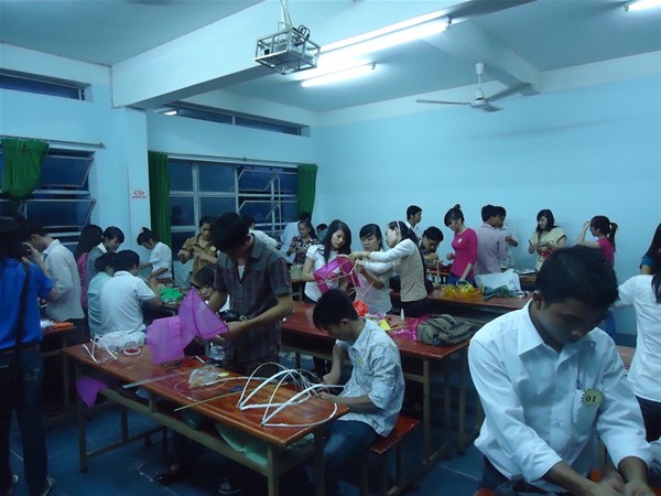 Hình 3: Các đội đang thực hiện phần thi làm lồng đèn