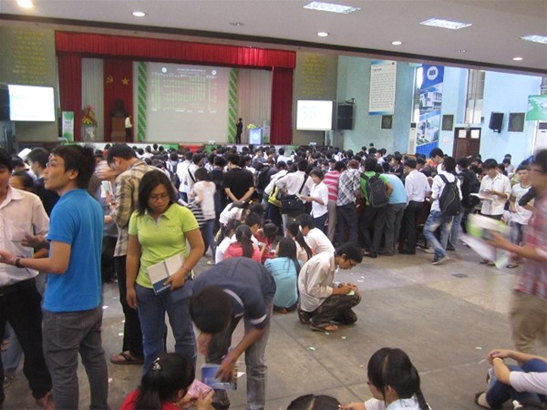 Hình 3, 4, 5, 6: Các "nhà đầu tư" đang đấu trí quyết liệt ở Hội trường Sàn giao dịch chứng khoán