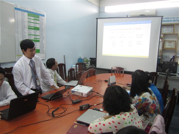 Theo kế hoạch về tổ chức Hội thảo Nghiên cứu khoa học giảng viên của Nhà trường nhằm mục đích ngày càng phát triển và nâng cao hiệu quả nghiên cứu của các đề tài. Vào lúc 14h00 ngày 23/04/2012, khoa QT-KTQT đã tổ chức báo cáo tiến độ nghiên cứu khoa học giáo viên theo định kì. Thành phần tham dự gồm Ban Lãnh Đạo khoa cùng các thầy cô là trợ giảng, giảng viên cơ hữu Khoa. Mục tiêu chính của buổi hội thảo là tập trung xây dựng ý kiến đóng góp để hoàn chỉnh tốt đề tài.