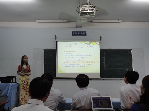 Hình 9: Cô Trần Thị Mỹ Hương báo cáo bài giảng môn Giao tiếp kinh doanh