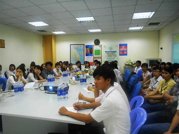 Một môi trường làm việc năng động, chuyên nghiệp và thân thiện, đó là điều mà đoàn tham quan đã cảm nhận được ngay từ lúc đặt chân đến công ty và được đổi thẻ khách thay cho thẻ sinh viên của công ty, được đích thân trưởng phòng hành chánh nhân sự đại diện cho công ty tiếp đoàn.