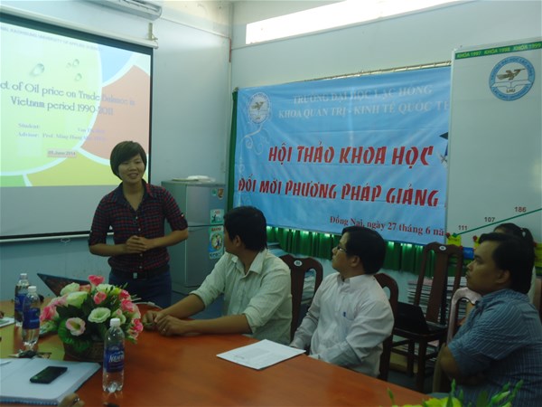 Buổi chiều cùng ngày, sau khi hoàn thành chương trình Thạc sĩ tại Đài Loan, ThS. Lê Hoàng Việt An và ThS. Văn Thị Bích đã chia sẻ một số khó khăn, thuận lợi, đồng thời lần lượt giới thiệu hai đề tài Thạc sĩ: "A Study of the Effect of Specific Internet Use on Export Perfomance: The Case of Vietnam" và "Impact of Oil Price on Trade Balance in Vietnam period 1990-2011". Đây là cơ hội để các giảng viên Khoa cùng nhau trao đổi những đề tài cũng như phương pháp, công cụ nghiên cứu mới nhằm phát triển công tác chuyên môn của Khoa.