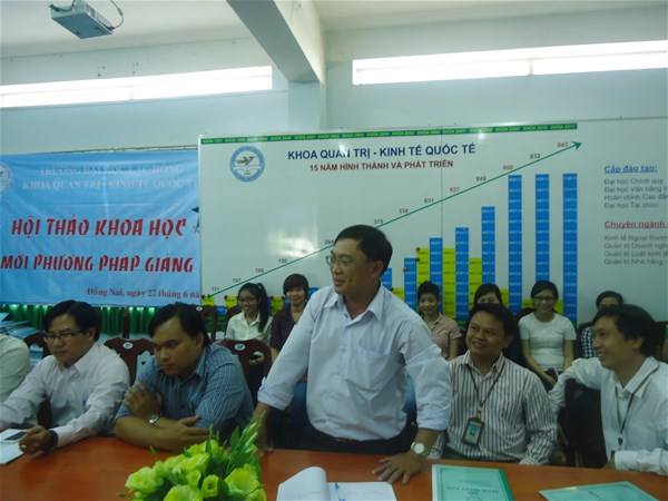 Mở đầu buổi họp, TS. Nguyễn Văn Tân - Trưởng Khoa QT-KTQT đã công bố mức điểm sàn cũng như điểm chuẩn của kỳ thi tuyển sinh đại học năm 2014. Thay mặt Lãnh đạo Khoa, Thầy cũng đưa ra một số phương hướng, nhiệm vụ cho năm học mới để mỗi bộ phận và nhân viên Khoa hoàn thành công việc đạt kết quả tốt. Lần lượt từng bộ phận giáo vụ, quản sinh, Đoàn - Hội cũng báo cáo các công tác của bộ phận mình như: lịch học, lịch thi, nghiên cứu khoa học giảng viên và sinh viên, giáo trình, điểm rèn luyện, sinh viên vi phạm kỷ luật, các hoạt động phong trào... Từ đó, Ban lãnh đạo cùng các Thầy Cô Khoa đã đưa ra một số ý kiến nhằm hoàn thiện từng công việc trên tinh thần thẳng thắn và chân thành.