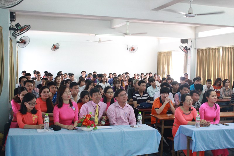 Chương trình diễn ra trong không khí vô cùng sôi nổi và hào hứng với sự tham dự của TS. Nguyễn Văn Tân - Trưởng Khoa QT-KTQT, quý Thầy Cô Trưởng Bộ môn, quý Thầy Cô giảng viên, nhân viên viên Khoa và gần 100 tân sinh viên khóa mới.