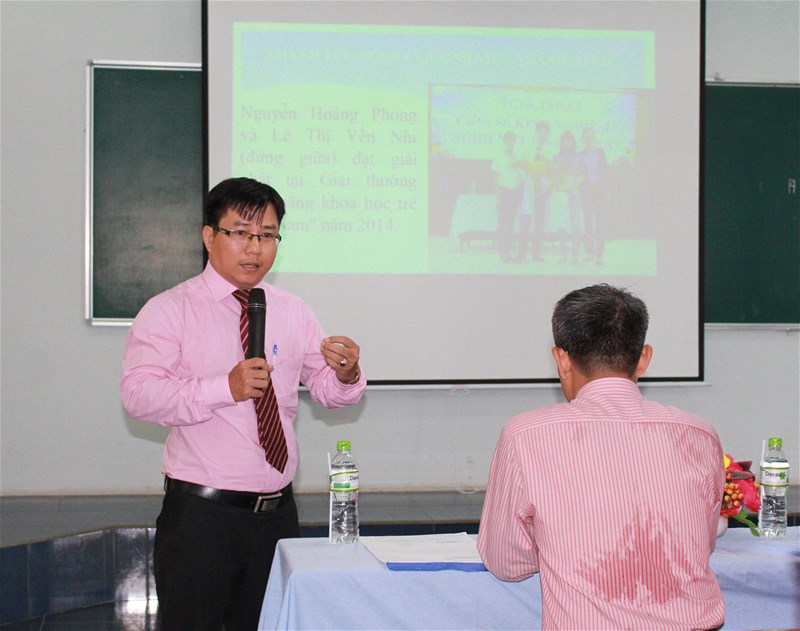 Mở đầu chương trình, TS. Nguyễn Văn Tân - Trưởng Khoa thay mặt Ban lãnh đạo Khoa giới thiệu với các bạn về cơ sở vật chất, đội ngũ giảng viên, nhân viên Khoa, các bậc học, ngành học, một số thành tựu nổi bật của Khoa trong thời gian vừa qua.