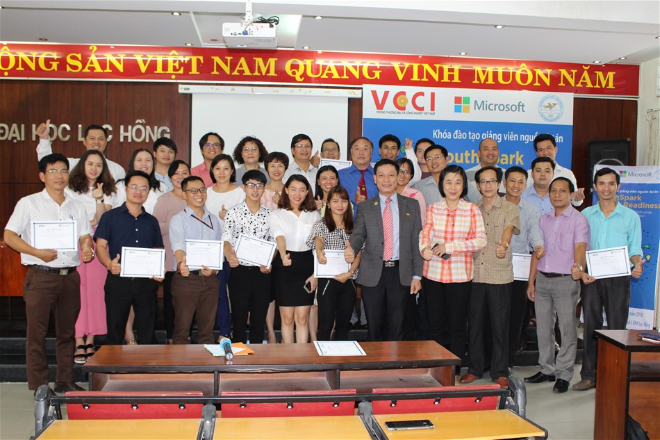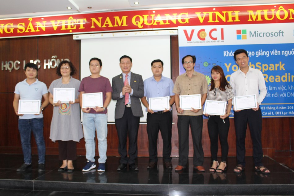 Thực hiện chỉ đạo của Ban giám hiệu Nhà trường, vừa qua, vào ngày 02 và 03/8/2018, Câu lạc bộ Khởi nghiệp Trường Đại học Lạc Hồng đã phối hợp với Phòng Thương mại và Công nghiệp Việt Nam (VCCI) và Công ty Microsoft Việt Nam tổ chức Khoá Đào tạo Giảng viên nguồn dự án “YourthSpark Career Readiness – Tăng cường kỹ năng làm việc, khởi nghiệp cho thanh niên và kết nối với DNVVN” tại phòng B203 và phòng C303 (phòng máy 03), Cơ sở 1, Trường Đại học Lạc Hồng.