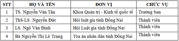 Về phía Hội Luật gia Đồng Nai, Sở Tư pháp, Tòa án và viện kiểm sát nhân dân TP. Biên Hòa gồm có: