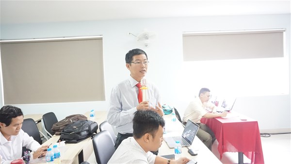 Hình 2: TS Nguyễn Văn Tân – Trưởng khoa Quản trị - KTQT trao đổi kinh nghiệm
