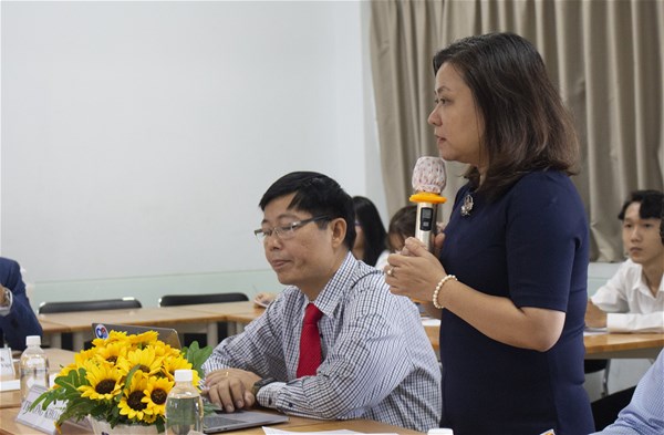 Cô ThS. Huỳnh Thị Như Hiếu - Trưởng bộ môn luật, giảng viên Khoa QT-KTQT phát biểu tại hội thảo