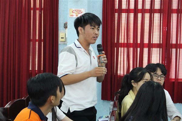 Sinh viên tham gia đặt câu hỏi tại chương trình phổ biến pháp luật Hôn nhân và gia đình