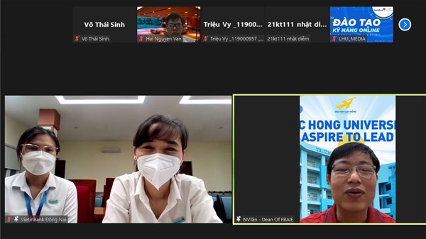 Đại học là nơi nuôi dưỡng ước mơ và trau dồi kiến thức để các bạn có thể chuẩn bị những hành trang tốt nhất khi ra trường, vì thế câu chuyện việc làm khi ra trường là vấn đề luôn được cộng đồng và người trong cuộc quan tâm, đặt lên hàng đầu, đặc biệt là trong bối cảnh dịch bệnh hiện nay, làm việc và học tập online trở nên phổ biến. Để giải quyết những vấn đề trên, giúp cho sinh viên có thêm kinh nghiệm trong việc phỏng vấn xin việc, tạo CV cho bản thân, trang bị những kỹ năng online, dễ dàng ghi điểm trong mắt nhà tuyển dụng, Bộ phận Quan hệ doanh nghiệp phối hợp cùng Khoa Quản Trị - Kinh Tế Quốc Tế và Khoa Tài chính kế toán tổ chức buổi tập huấn online với chủ đề “Đào tạo kỹ năng doanh nghiệp cùng ngân hàng Vietinbank”