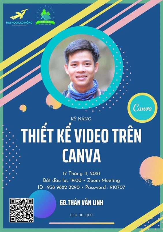 Hôm nay, vào lúc 19 giờ 00 phút, CLB Du Lịch của Khoa Quản Trị - Kinh Tế Quốc Tế sẽ chia sẻ cho các bạn cách làm video đơn giản trên Canva. Vậy Canva là gì? Cài đặt và sử dụng nó như thế nào. Mời quý thầy cô quan tâm và các bạn sinh viên tham gia buổi sinh hoạt tối nay.