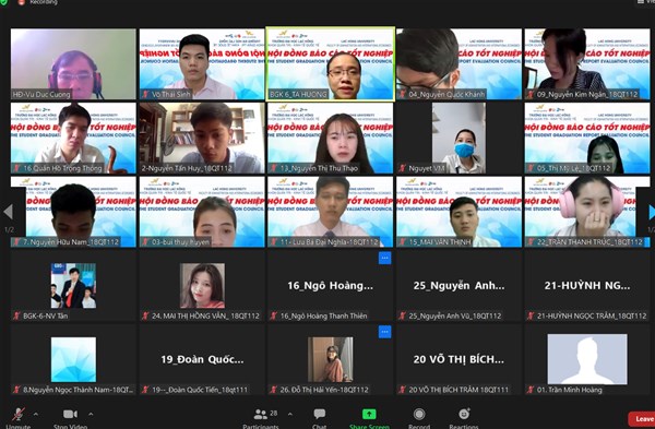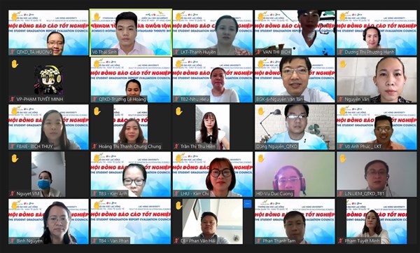 Được sự đồng ý của Ban Giám Hiệu Trường Đại học Lạc Hồng. Vào lúc 08h00, ngày 30 tháng 12 năm 2021, Khoa Quản trị - Kinh tế quốc tế đã tổ chức Báo cáo tốt nghiệp sinh viên khoá 2018 bằng hình thức trực quyến, bao gồm sinh viên các lớp 18LU111, 18QT111, 18QT112, 18NT111.