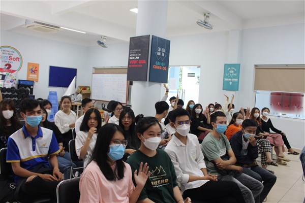 Hình ảnh các bạn tương tác sôi nổi cùng 2 diễn giả