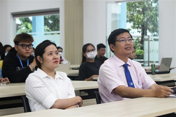 Đồng hành cùng buổi chuyên đề còn có anh Nguyễn Văn Ry - Chủ nhiệm CLB Luật Kinh Tế và Thầy Võ Thái Sinh - Bí thư đoàn khoa cũng có vài chia sẻ về các việc cần làm để tạo nên một video hoàn chỉnh. Anh Nguyễn Văn Ry đã truyền đạt lại không ít kinh nghiệm cho các bạn sinh viên dưới góc độ là một người đàn anh đi trước từng tự mình tìm tòi xem làm thế nào để thiết kế được một video hoàn chỉnh. Thầy Võ Thái Sinh giúp cho các bạn sinh viên tìm hiểu sâu hơn về ứng dụng Canva như làm thế nào để chèn nhạc, chèn đồ họa, tìm background,.. một cách chi tiết nhất.