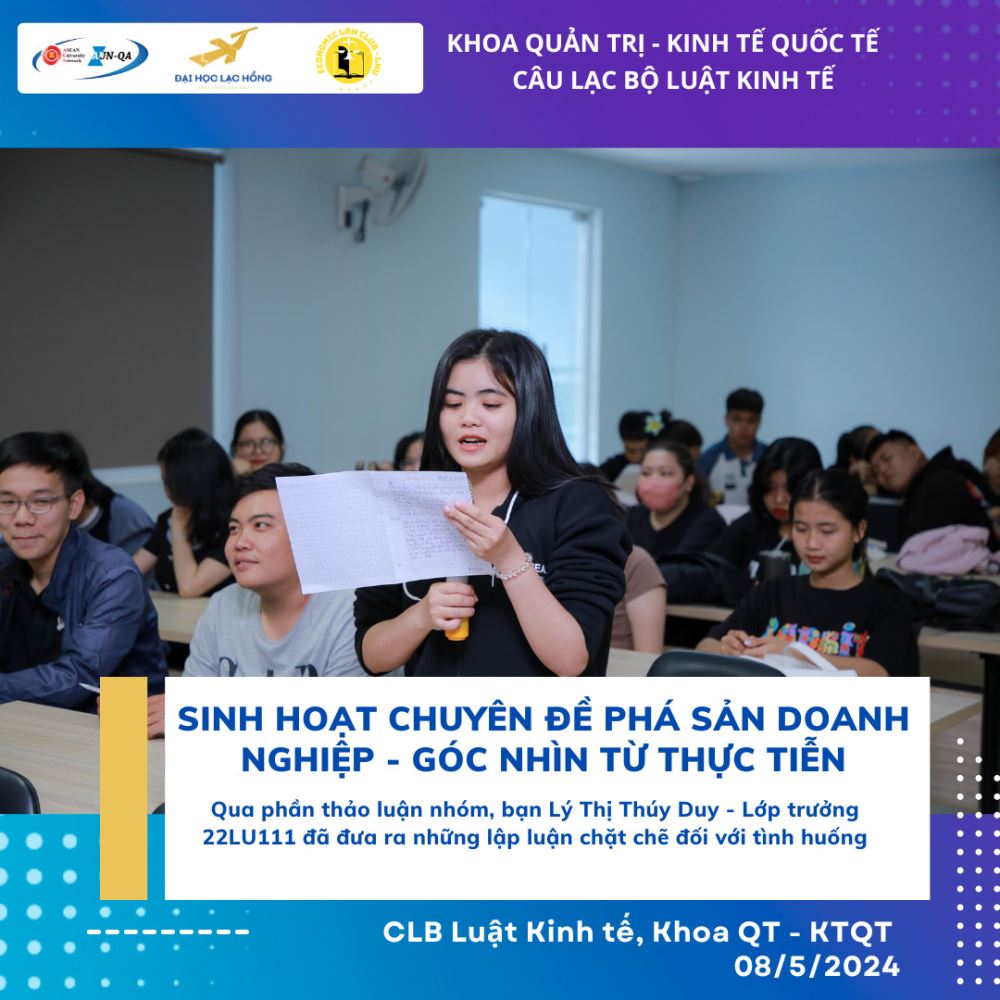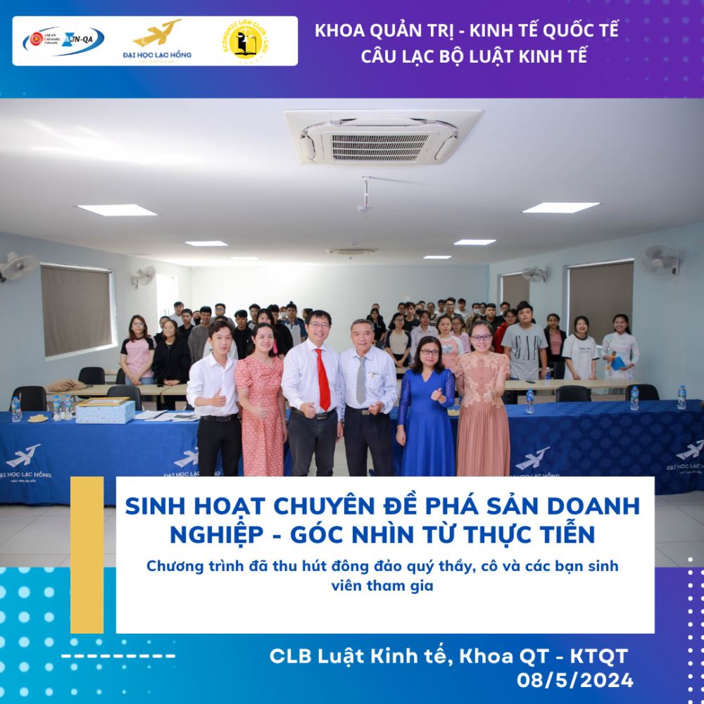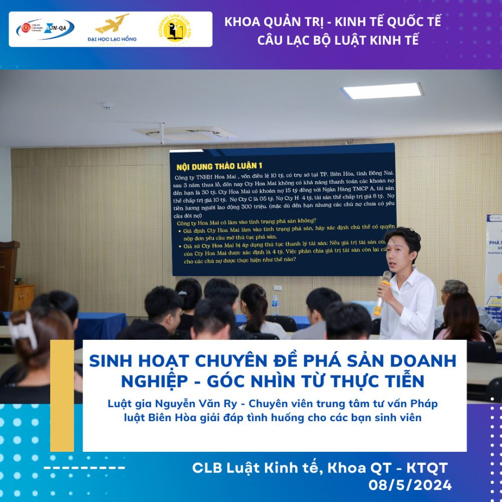 Nhằm trang bị hành trang kiến thức và tạo nhiều kỹ năng cho sinh viên phát huy, chương trình tổ chức nhằm mang đến cho các bạn một cái nhìn chân thực và sâu sắc về lĩnh vực rủi ro trong những doanh nghiệp … phá sản trong lĩnh vực kinh doanh. Nay CLB Luật Kinh tế tổ chức buổi tọa đàm “Phá sản doanh nghiệp – Góc nhìn từ thực tiễn” giúp cho các bạn sinh viên hiểu rõ hơn về những thực tế các doanh nghiệp