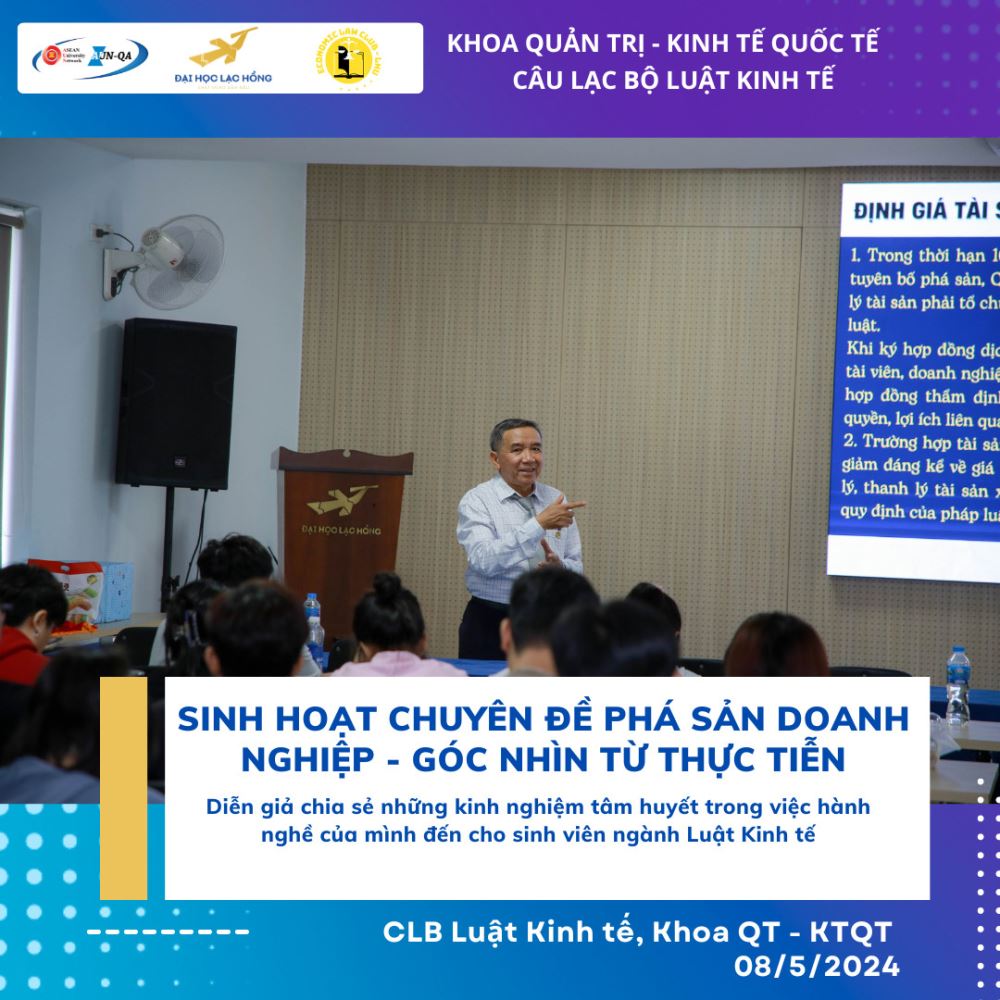 Tại trên ghế nhà trường, chúng ta chỉ có thể tiếp cận với các quy định pháp luật và tình huống giả định. Tuy nhiên, khi bước vào thực tế làm việc, chúng ta sẽ đối mặt với vô số tình huống phức tạp và đa dạng, Buổi chia sẻ đến từ Luật gia Phạm Đình Đức - Giám đốc Trung tâm Tư vấn pháp luật Biên Hòa, với hơn 40 năm kinh nghiệm, đã chia sẻ những kiến thức quý giá với sinh viên ngành Luật về buổi tọa đàm "Phá sản doanh nghiệp - Góc nhìn từ thực tiễn" chắc hẳn các bạn sinh viên cũng có cơ hội khám phá những bí ẩn ẩn sau bức màn "thất bại", từ đó rút ra cho mình những bài học quý giá và tiếp thêm động lực để chinh phục thành công cho hành trình sắp tới.