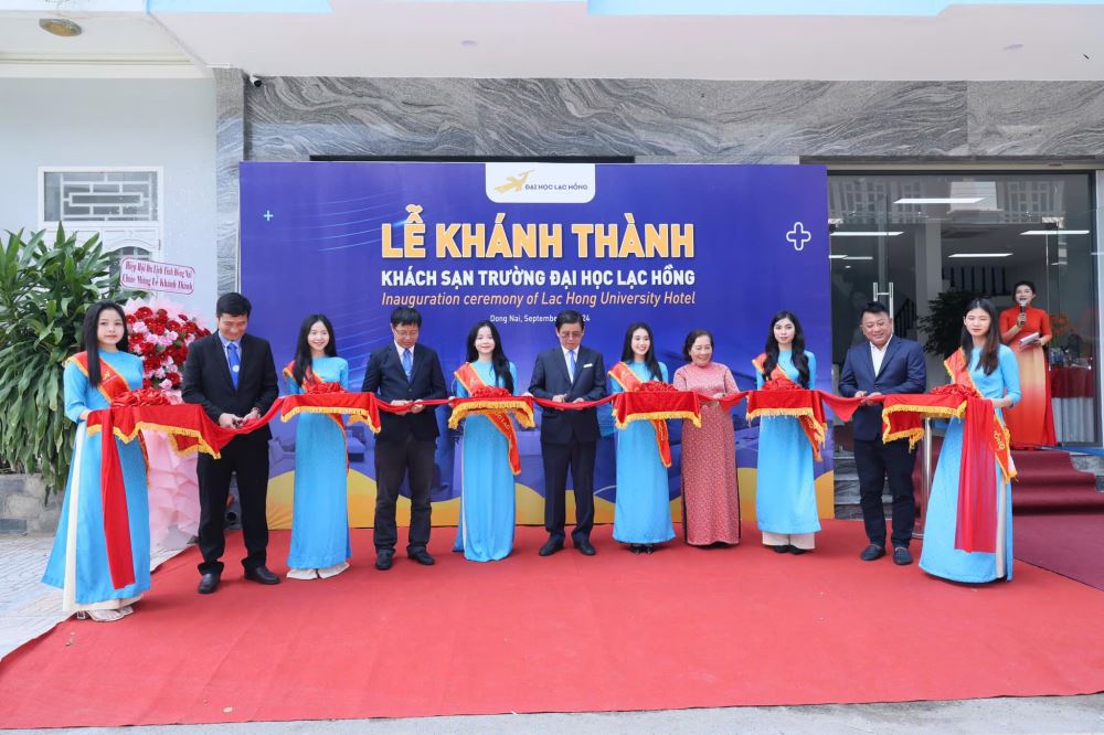 Ban giám hiệu Nhà trường cùng cắt băng khánh thành Lạc Hồng Hotel