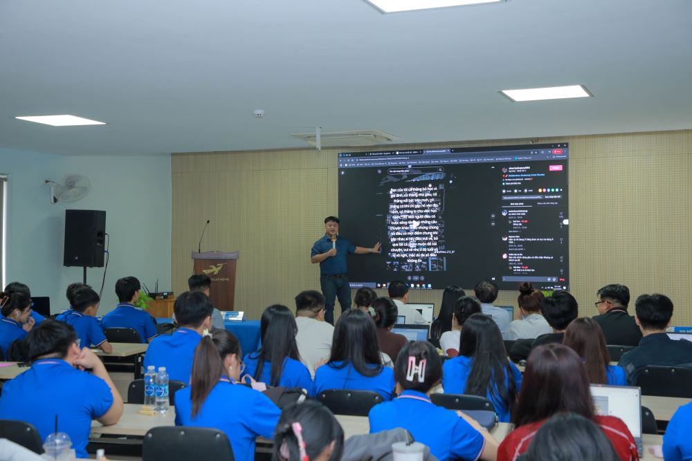 Sáng ngày 15/11/2024, sinh viên Khoa Quản trị - Kinh tế quốc tế, Trường Đại học Lạc Hồng, đã tham gia buổi sinh hoạt chuyên đề với chủ đề “Phát triển kỹ năng truyền thông số trong du lịch”. Chương trình được dẫn dắt bởi diễn giả Thầy Nguyễn Võ Sơn, chuyên viên Trung tâm Tuyển sinh & Quan hệ công chúng. Đây là hoạt động nằm trong chuỗi chương trình trải nghiệm thực tế của ngành Quản trị dịch vụ du lịch và lữ hành, nhằm giúp sinh viên nâng cao nhận thức và trang bị những kỹ năng cần thiết để đáp ứng nhu cầu ngày càng cao của ngành du lịch.