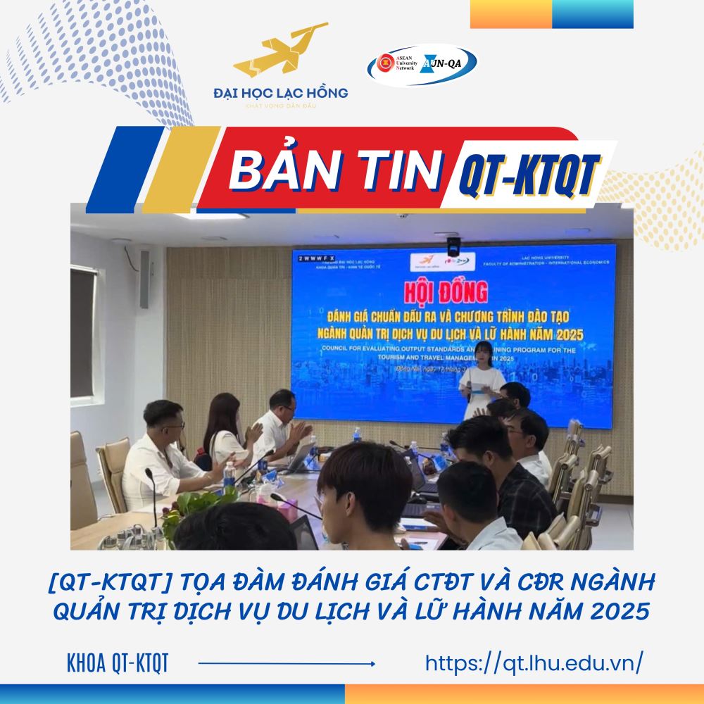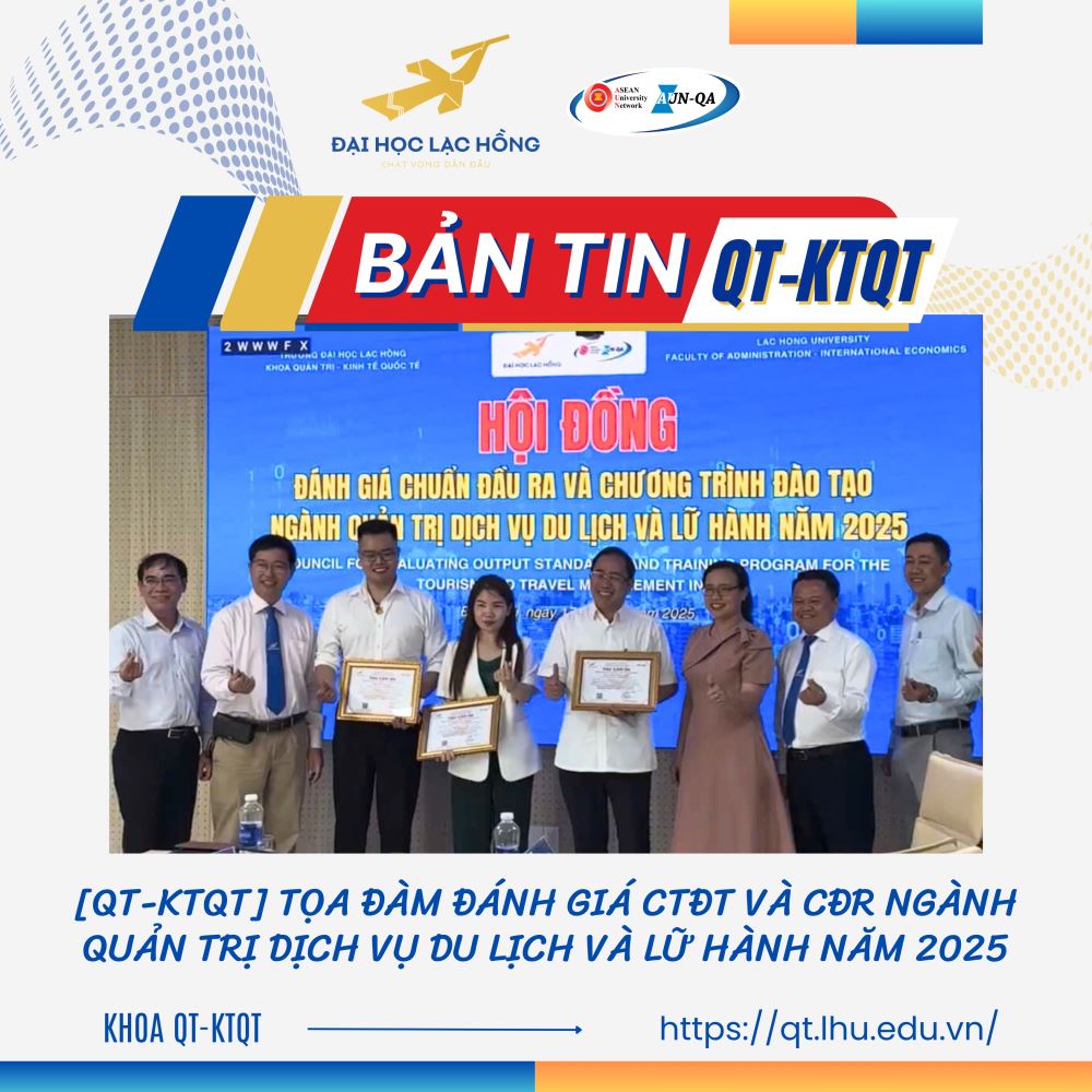 Ngày 17/3/2025, khoa Quản trị - Kinh tế Quốc tế đã tổ chức thành công buổi tọa đàm đánh giá Chương trình đào tạo (CTĐT) và Chuẩn đầu ra (CĐR) của ngành Quản trị dịch vụ du lịch và lữ hành. Sự kiện đã diễn ra với sự tham gia của các giảng viên, chuyên gia trong ngành cùng đại diện doanh nghiệp, nhằm mang đến góc nhìn toàn diện, cập nhật và thiết thực cho chương trình đào tạo.
