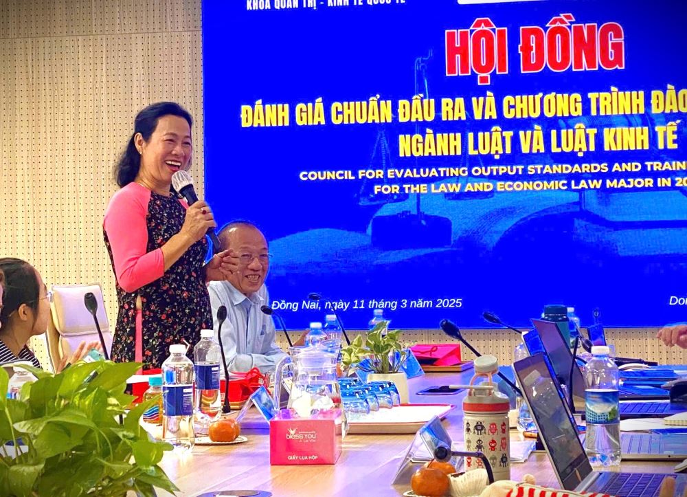 Ông Phan Văn Châu - Chủ tịch Hội Luật gia Đồng Nai đánh giá cao sự phù hợp của chương trình đào tạo hiện tại. Ông nhấn mạnh tầm quan trọng của môn Phương pháp nghiên cứu luật học, cho rằng sinh viên cần tập trung vào môn học này để phát triển kỹ năng phân tích và giải quyết các vấn đề pháp lý thực tế. Bên cạnh đó, ông gợi ý ngành Luật Kinh tế nên tăng cường kết nối với Ban Quản lý khu công nghiệp, hải quan, hiệp hội doanh nghiệp, hợp tác xã để mang đến những kiến thức thực tế phong phú cho sinh viên.