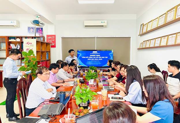 Tại buổi tổng kết, cô Phạm Thị Võ Hồng Diệu – Quản sinh Khoa đã trình bày báo cáo tổng kết, nêu rõ những kết quả đạt được, các mô hình hiệu quả đã triển khai, khó khăn thường gặp và đề xuất các hướng cải tiến thiết thực cho năm học 2025–2026.