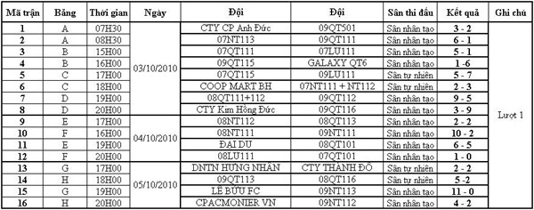 Khoa QT-KTQT Kết quả thi đấu Giải Siêu cúp 2010 Lượt 1