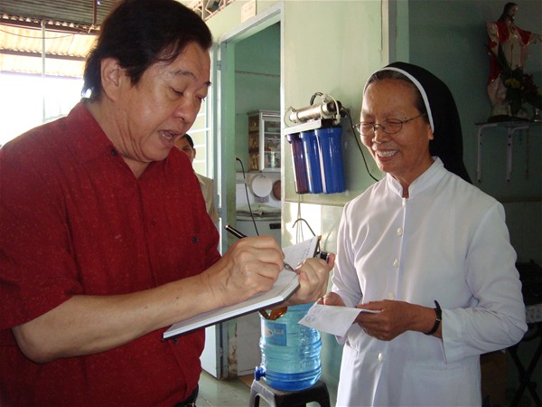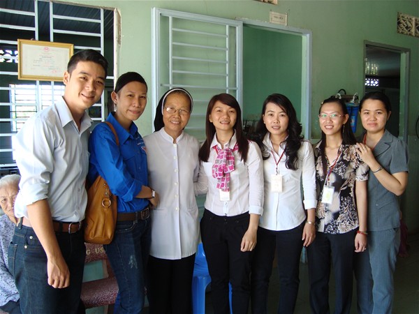 Chụp ảnh lưu niệm với Sơ Trần Thị Thu Hường - Sơ bề trên tại Viện dưỡng lão - một người luôn sống vì người khác, với gương mặt thật phúc hậu