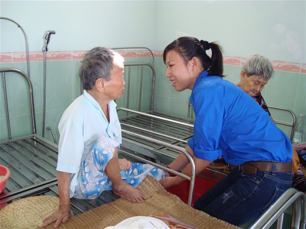 Thăm hỏi và trò chuyện với các cụ bị khuyết tật