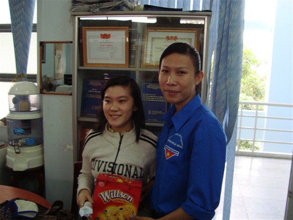 Đồng chí Đoàn Việt Anh -Bí thư Đoàn Khoa, và đ/c Khánh Vân chủ tịch Hội SV Khoa thay mặt Ban chấp hành tặng quà tết các bạn sinh viên