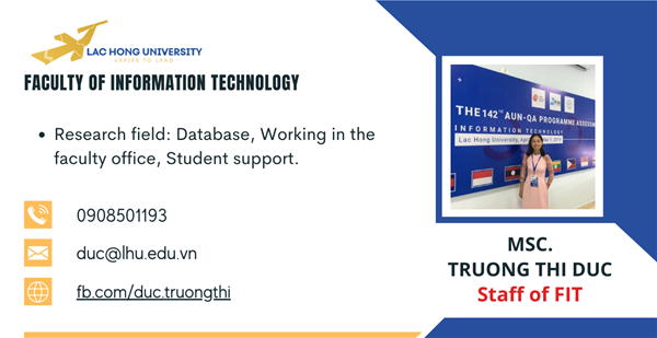 Hiện tại, FIT có 17 giảng viên chính thức, trong đó có 7 giáo sư / phó giáo sư (41,18%); 1 tiến sĩ (5,88%); 4 thạc sĩ (23,53%), 4 người còn lại đang lấy bằng tiến sĩ (23,53%), 1 người đang học thạc sĩ (5,88%). Ngoài ra, có 13 giảng viên bán thời gian (11 giảng viên làm việc toàn thời gian tại LHU và 2 giảng viên thỉnh giảng). Họ đã đạt được bằng cấp của các trường đại học được công nhận ở Việt Nam và nước ngoài. Nền tảng của họ đủ để tiến hành không chỉ nghiên cứu khoa học, phát triển chương trình giảng dạy, đổi mới phương pháp đánh giá và phương pháp sư phạm mà còn cả chuyển giao công nghệ.