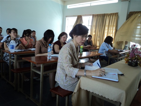 Vào lúc 8 giờ ngày 13 tháng 04 năm 2012, tại phòng D501, Khoa Ngôn Ngữ Anh đã tiến hành buổi kiểm tra tiến độ các đề tài tham gia đợt báo cáo NCKH sinh viên lần thứ 18 khóa 2007. Tham dự buổi duyệt tiến độ đề tài có sự góp mặt của ThS. Ngô Thị Xuân Liên – Trưởng khoa Ngôn Ngữ Anh, Cô Lê Thị Ngọc Hương - Phó trưởng khoa, ThS. Lê Thị Bích Vy – Tổ trưởng tổ Thực hành tiếng cùng toàn thể giảng viên trong khoa.