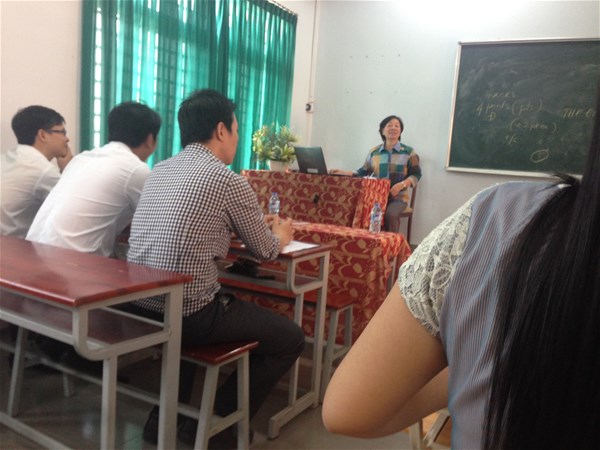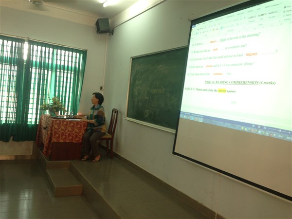 Ngay sau Tết Nguyên Đán, vào lúc 08h00 ngày 15 tháng 02 năm 2014, tại phòng SN-C103 Khoa Ngôn ngữ Anh đã tổ chức buổi Mini workshop về cách viết và trình bày một đề thi ngoại ngữ theo chuẩn quốc tế. Đây là bước mở đầu cho Hội thảo chuyên đề về Kiểm tra và Đánh giá, dự kiến sẽ được tổ chức vào tháng 04 năm 2014. Tham dự workshop có sự góp mặt của ThS. GVC Ngô Thị Xuân Liên - Trưởng khoa Ngôn Ngữ Anh, ThS. GVC Hoàng Thúy Nguyên - Phó khoa cùng toàn thể giảng viên Khoa Ngôn ngữ Anh và Khoa Anh văn Đại cương.
