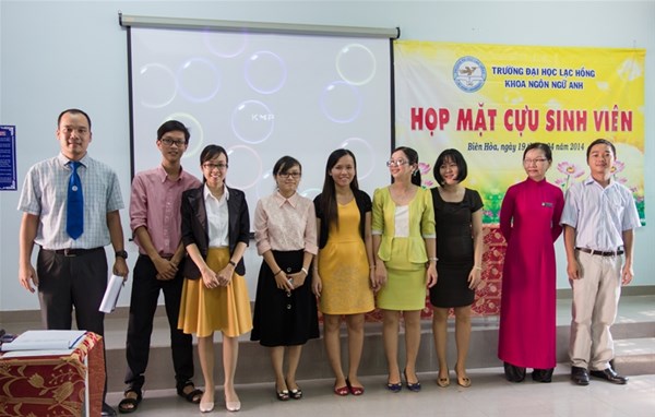 Vào lúc 8h00 ngày 19 tháng 04 năm 2014 tại Hội trường SN-C110, Trường Song Ngữ Lạc Hồng, Khoa Ngôn Ngữ Anh đã long trọng tổ chức chương trình họp mặt cựu sinh viên lần I năm 2014 nhằm mục đích giúp cựu sinh viên của Khoa có dịp thăm lại các thầy cô và giao lưu với các sinh viên khóa dưới, gắn kết hơn nữa mối quan hệ giữa thầy cô giáo với sinh viên, và giữa sinh viên các khóa với nhau. Đây cũng là dịp ra mắt Ban liên lạc cựu sinh viên Khoa, là cầu nối giữa các thế hệ sinh viên qua từng thời kỳ. Ban liên lạc cựu sinh viên khoa Ngôn ngữ Anh gồm 09 thành viên: