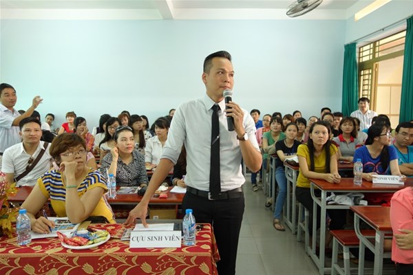 Tham gia buổi họp mặt có sự hiện diện của NGƯT. TS Nguyễn Thị Thu Lan – Phó Hiệu trưởng nhà trường, ThS. Trần Dũng – Giám đốc Trung tâm Quan hệ doanh nghiệp và hỗ trợ sinh viên, GVC. ThS Ngô Thị Xuân Liên – Trưởng khoa Ngôn ngữ Anh, các cán bộ - giảng viên – nhân viên khoa cùng đông đảo cựu sinh viên và sinh viên các khóa về tham dự. Ban chủ nhiệm khoa cũng đã kết hợp đưa nội dung chuẩn đầu ra vào buổi họp mặt để cùng nhau thảo luận và đóng góp ý kiến. Qua đó, các cựu sinh viên cũng đã nhiệt tình trao đổi và chia sẻ kinh nghiệm làm việc, cơ hội việc làm sau khi ra trường cho các sinh viên năm cuối. Bên cạnh đó, các bạn sinh viên cũng đặt ra khá nhiều câu hỏi và các bạn cũng tỏ ra hài lòng với phần giải đáp của các anh chị cựu sinh viên.