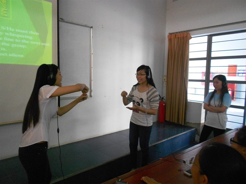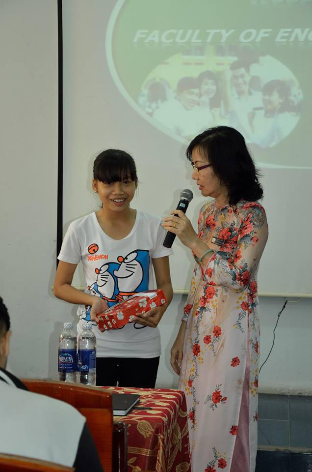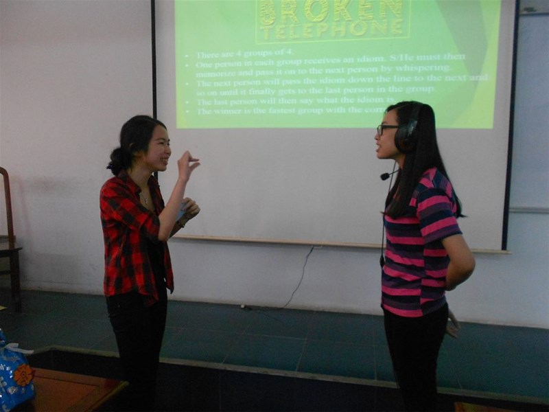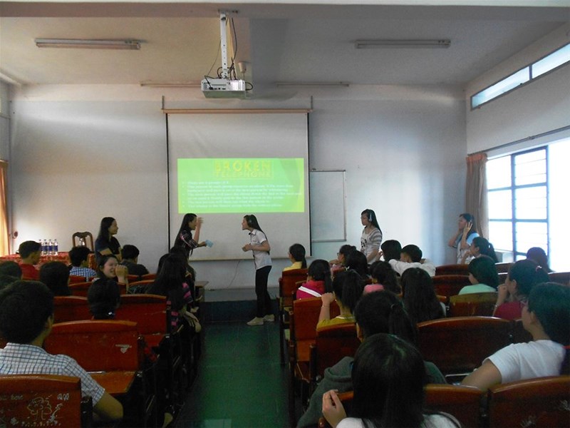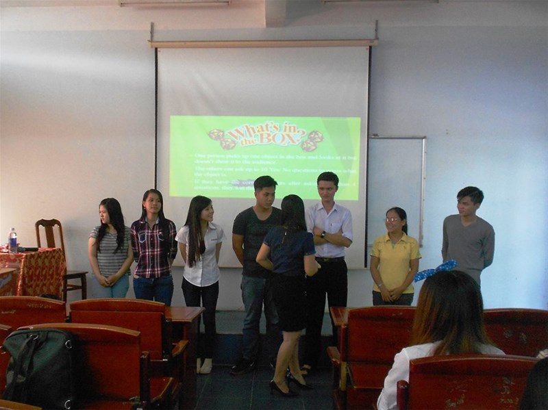 Mở đầu chương trình, Ban chấp hành Đoàn – Hội sinh viên khoa đã sẵn sàng hâm nóng không khí trong khán phòng bằng một số trò chơi quen thuộc bên cạnh các tiết mục văn nghệ góp vui đến từ các bạn sinh viên khóa trước mang lại không khí vô cùng vui tươi và ấm áp. Với sự quan tâm sâu sắc dành cho sinh viên, ThS. GVC Ngô Thị Xuân Liên –Trưởng Khoa cùng ThS. GVC Hoàng Thúy Nguyên – Phó trưởng Khoa đã giới thiệu đôi nét về chương trình học tập, đội ngũ cán bộ, giảng viên trong Khoa, đồng thời chia sẻ những bỡ ngỡ của các tân sinh viên và gửi gắm các em những lời dặn dò rất thiết thực, giúp các em hiểu rõ về ngành học của  mình và đạt kết quả cao trong học tập. Tiếp lời Ban chủ nhiệm Khoa, bộ phận giáo vụ, quản sinh và quản lý thực tập cũng lần lượt giới thiệu tổng quan về Khoa, các nội quy, quy định, thủ tục xử lý hành chính cũng như các hoạt động chuyên môn và Đoàn – Hội giúp các tân sinh viên vững vàng hơn trong môi trường học tập mới. Đồng thời các bộ phận liên quan cũng đã giải đáp rất nhiều thắc mắc của các em tân sinh viên trước khi đưa các em đến với Câu lạc bộ tiếng Anh lần I của năm học mới này. Đây là một trong những sân chơi học thuật do khoa Ngôn ngữ Anh tổ chức được đông đảo sinh viên yêu thích và tham gia nhiệt tình nhất. Dưới sự dẫn dắt của các giảng viên nhiều kinh nghiệm, các em tân sinh viên tuy lần đầu đến với câu lạc bộ nhưng đã tự tin và bản lĩnh trong từng hoạt động tham gia. Tại đây, ngoài việc thử sức với khả năng nói tiếng Anh của mình, các em còn có cơ hội giao lưu với rất nhiều bạn mới và nhận về những phần quà xinh xắn cho mình.