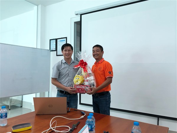 Thầy Phạm Thanh Bình tặng quà cho Đại diện Ban lãnh đạo công ty