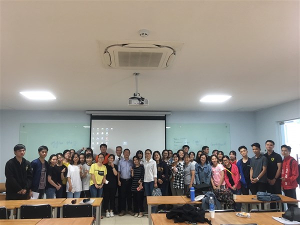 Sinh viên chụp ảnh lưu niệm cùng Diễn giả và thầy Phạm Thanh Bình