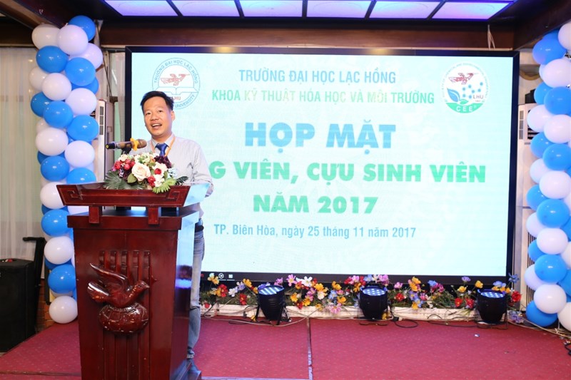 Sáng ngày 25 tháng 11 năm 2017 tại Khách sạn Đồng Nai, Ban liên lạc cựu sinh viên Khoa Kỹ Thuật Hóa Học - Môi Trường, Trường Đại Học Lạc Hồng đã tổ chức buổi họp mặt Cựu sinh viên Khoa Kỹ Thuật Hóa Học - Môi Trường trong không khí trang trọng và ấm cúng. Tới dự buổi họp mặt có Thầy TS. Diệp Cẩm Thu Phó hiệu trưởng, Thầy TS. Nguyễn Huỳnh Bạch Sơn Long Trưởng Khoa Kỹ Thuật Hóa Học - Môi Trường và đặc biệt có sự tham gia của quý thầy cô trong Khoa và hơn 100 các bạn cựu sinh viên Khoa Kỹ Thuật Hóa Học - Môi Trường đang làm việc trên cả nước.